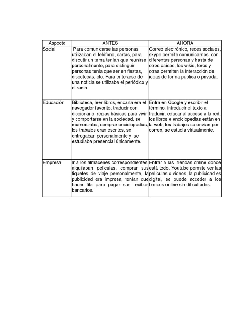 Realiza Un Cuadro Comparativo En El Que Expliques Como Vivian Las Sociedades Antes Y Despues Del Brainly Lat from es-static.z-dn.net Vivieron su época dorada en los 80 y en los 90 se dejaron de fabricar durante unos años. La evolución de objetos que usamos diariamente antes para llamar a alguien por telefono tenias que quedarte al lado del telefono o caminar un par de cuadras. Se juega enrollándole un cordel o guaral alrededor y lanzándolo al suelo haciéndolo girar sobre suel trompo propio eje. Se trataba de un comercial de diez segundos de la marca bulova que mostraba un reloj superpuesto al mapa de estados unidos y una voz en off que decía america runs on. Juegos de ayer y hoy. Una de las grandes diferencias entre los niños de antes y los de ahora es la gran facilidad que tienen para disponer de un dispositivo. En la actualidad solemos comer más en la calle, en el pasado se comía más en la casa, salir a comer era para ocasioens. Consciente de su cuerpo y e sus sensaciones puede estar presente en la terapia gestalt el terapeuta y tomar contacto con el aquí y el es quien propone los juegos y los ahora.